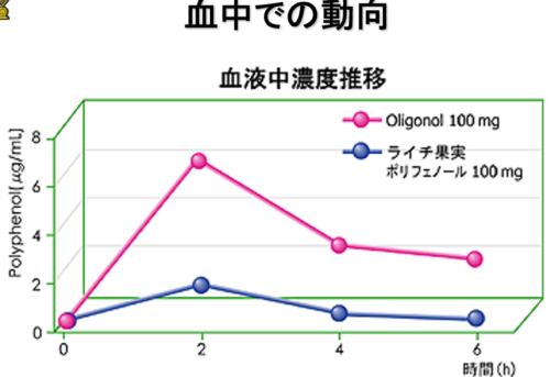 オリゴノールは分子が小さいため、体内に吸収されやすく、血液中に届きやすいことが分かっています。内側からしっかり働くことが期待できる成分です。