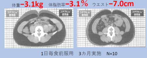モニター試験で内蔵脂肪、腹囲、皮下脂肪の減少がみられています!!