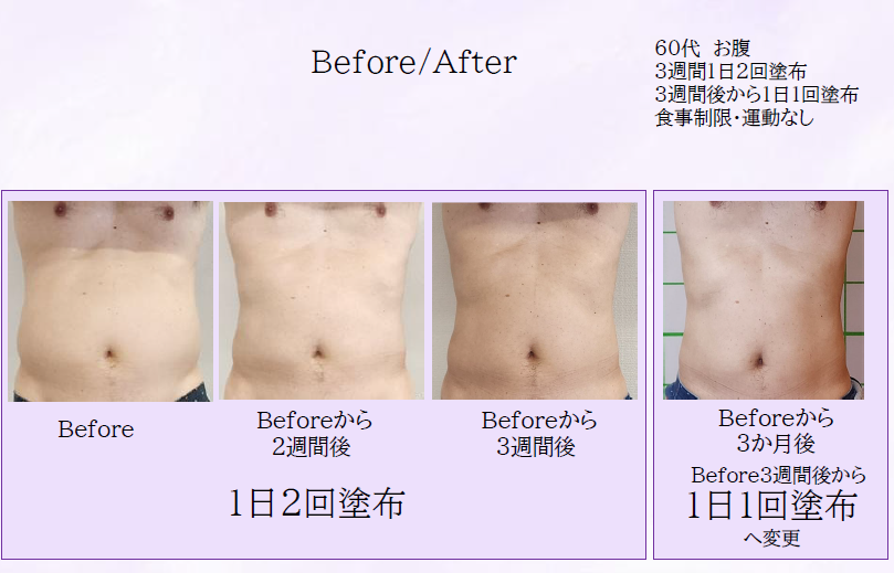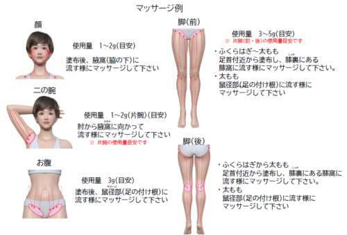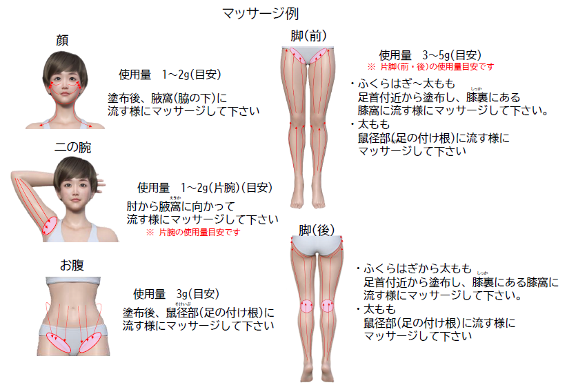 ・胸など痩せたくない部位への塗布はお控えください